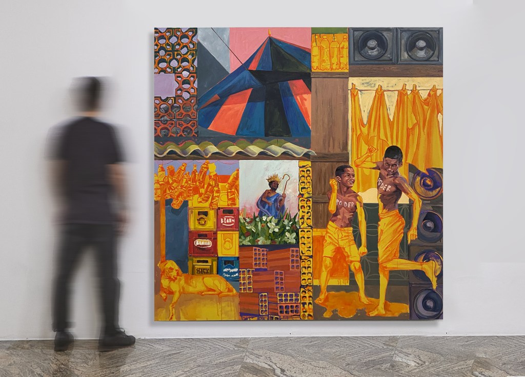Os assuntos então, seguem sua travessia entre territórios, histórias, os costumes e comportamentos que encontram seus espaços nas lajes, ruas, quintais, avizinhamentos, e aqui na exposição, se assentam, acolhidos pelas telas e na polissemia de sentidos que se estabelecem nessa troca com outros lugares e com seus interlocutores, que podem contar junto, de janelas abertas, sobre quem somos, de onde viemos e como chegamos até aqui.