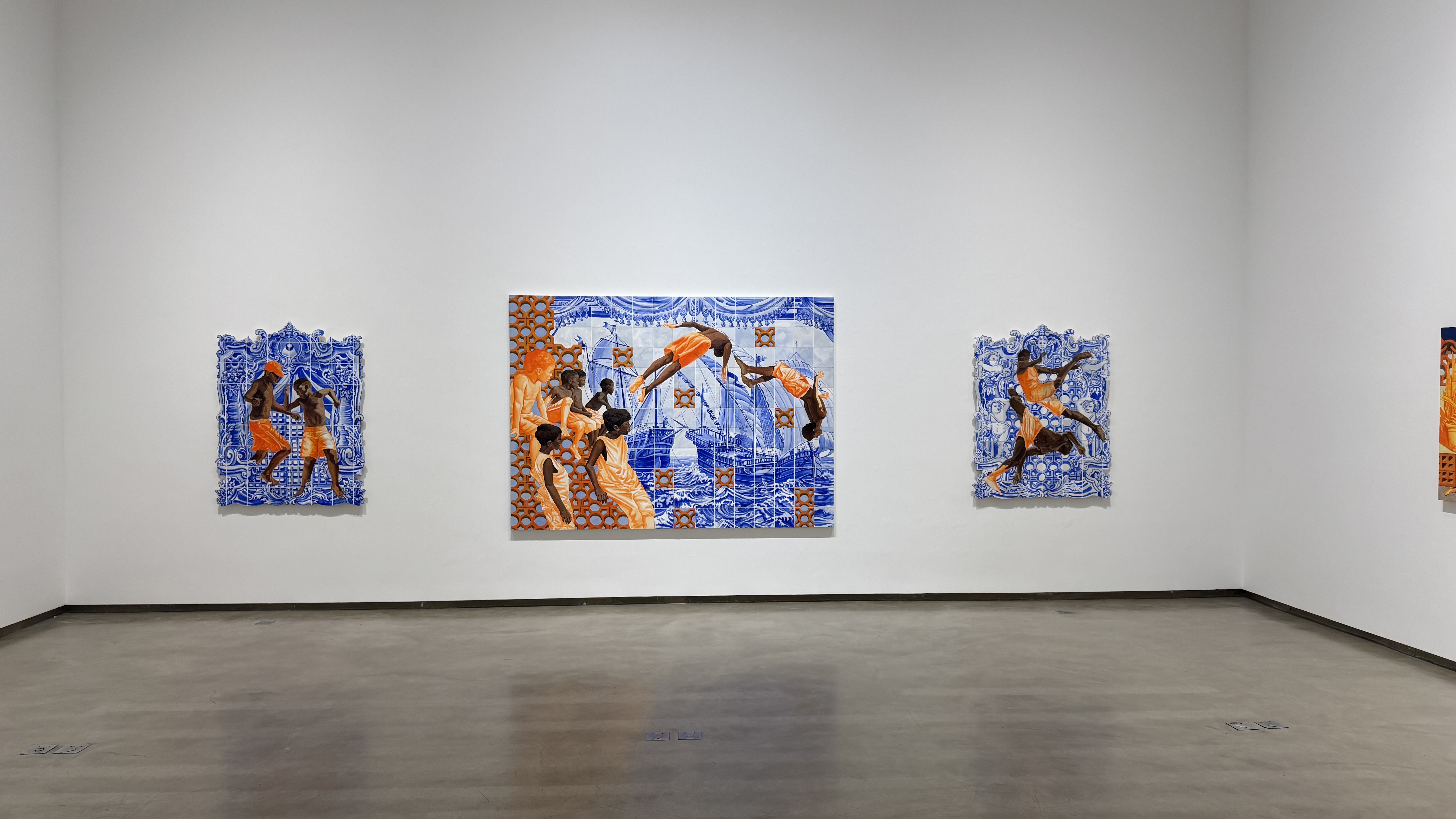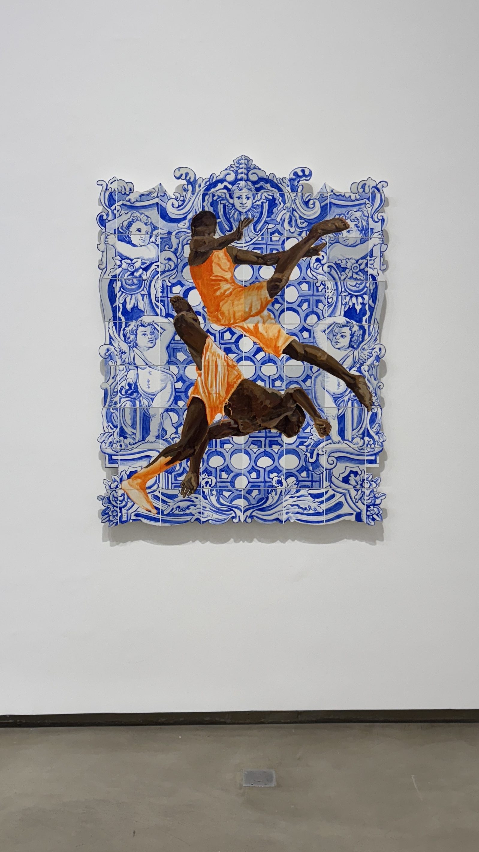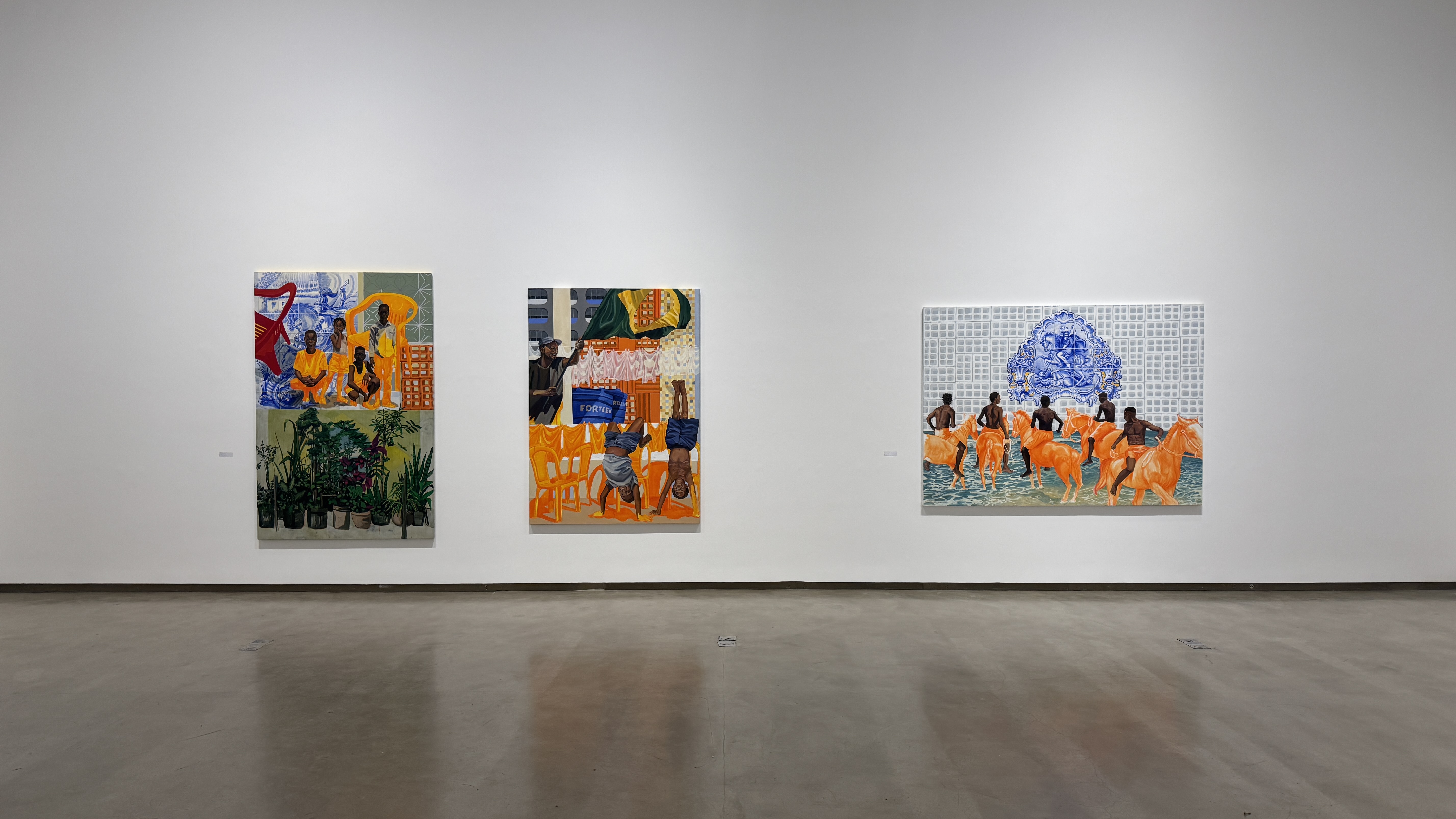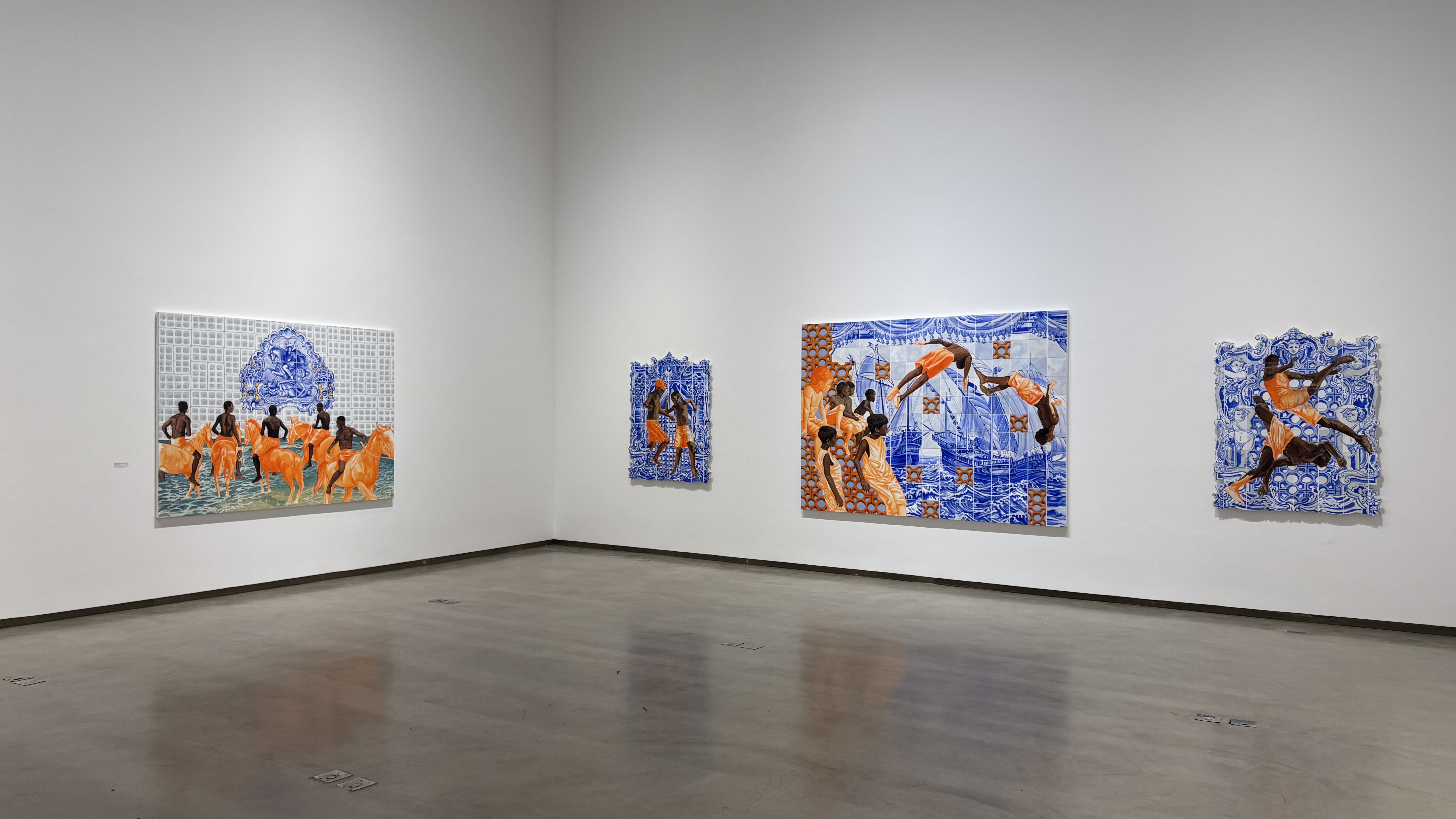 lombo de cavalos, entre as rachaduras dos azulejos azuis, entre
