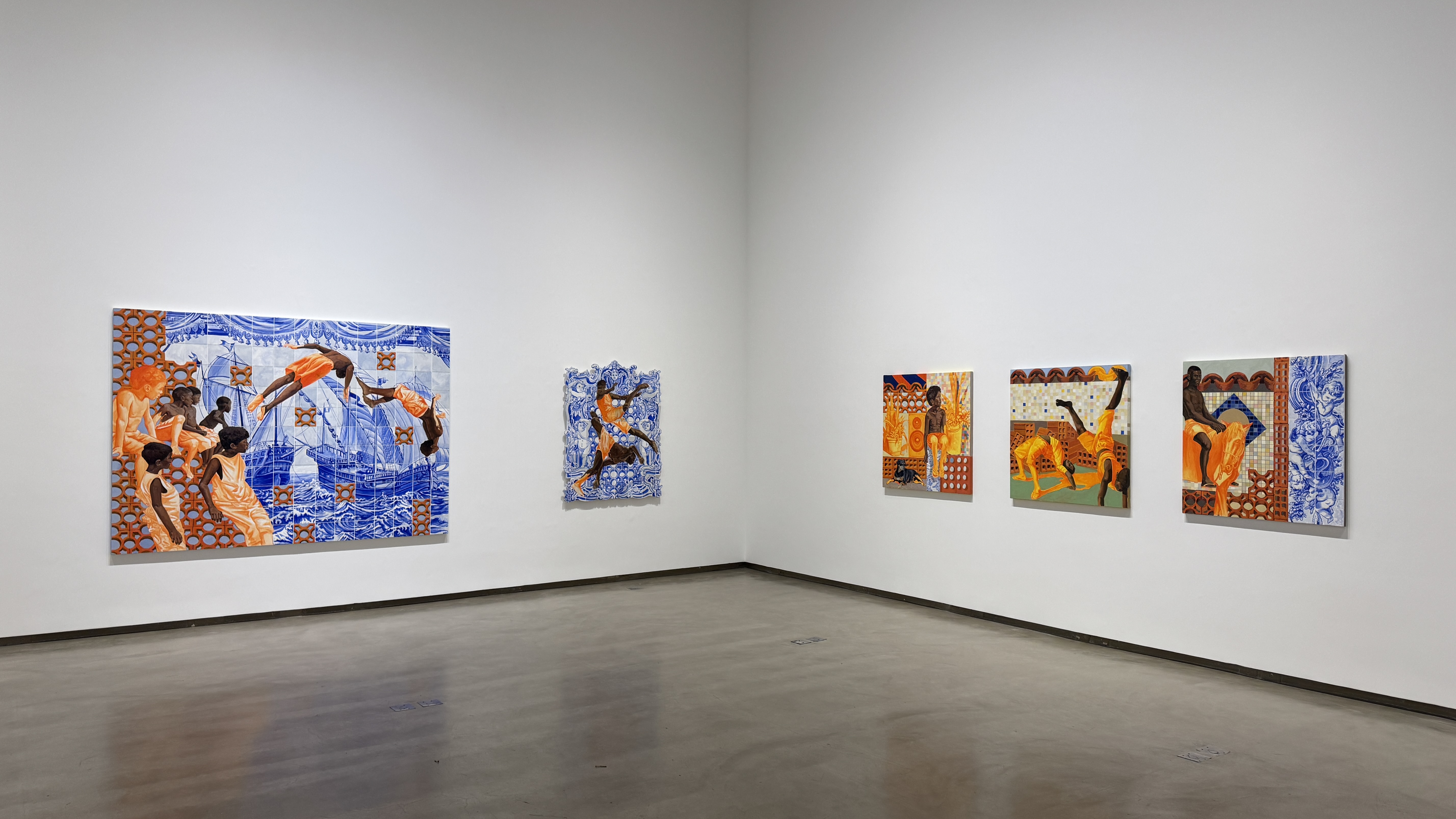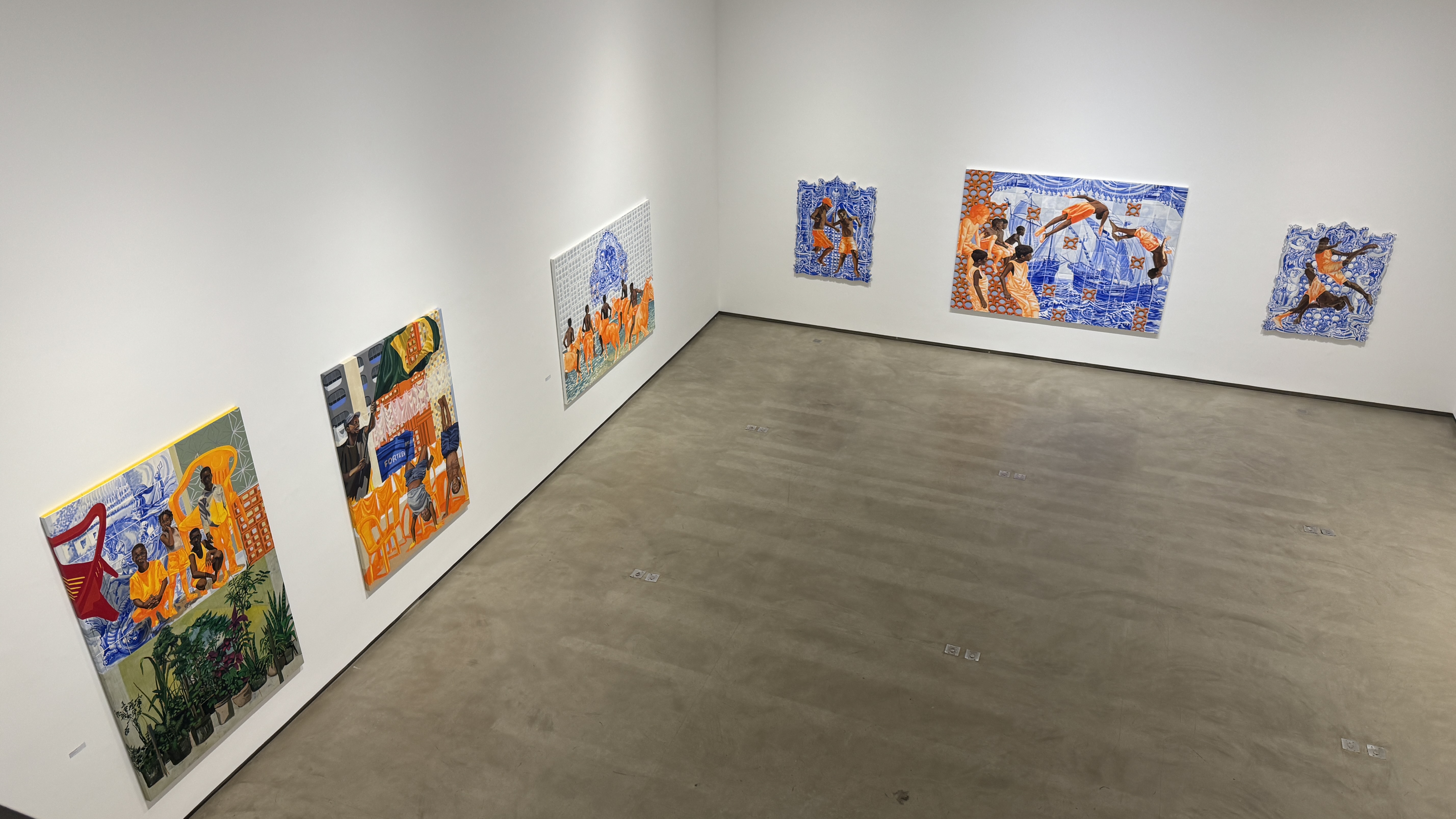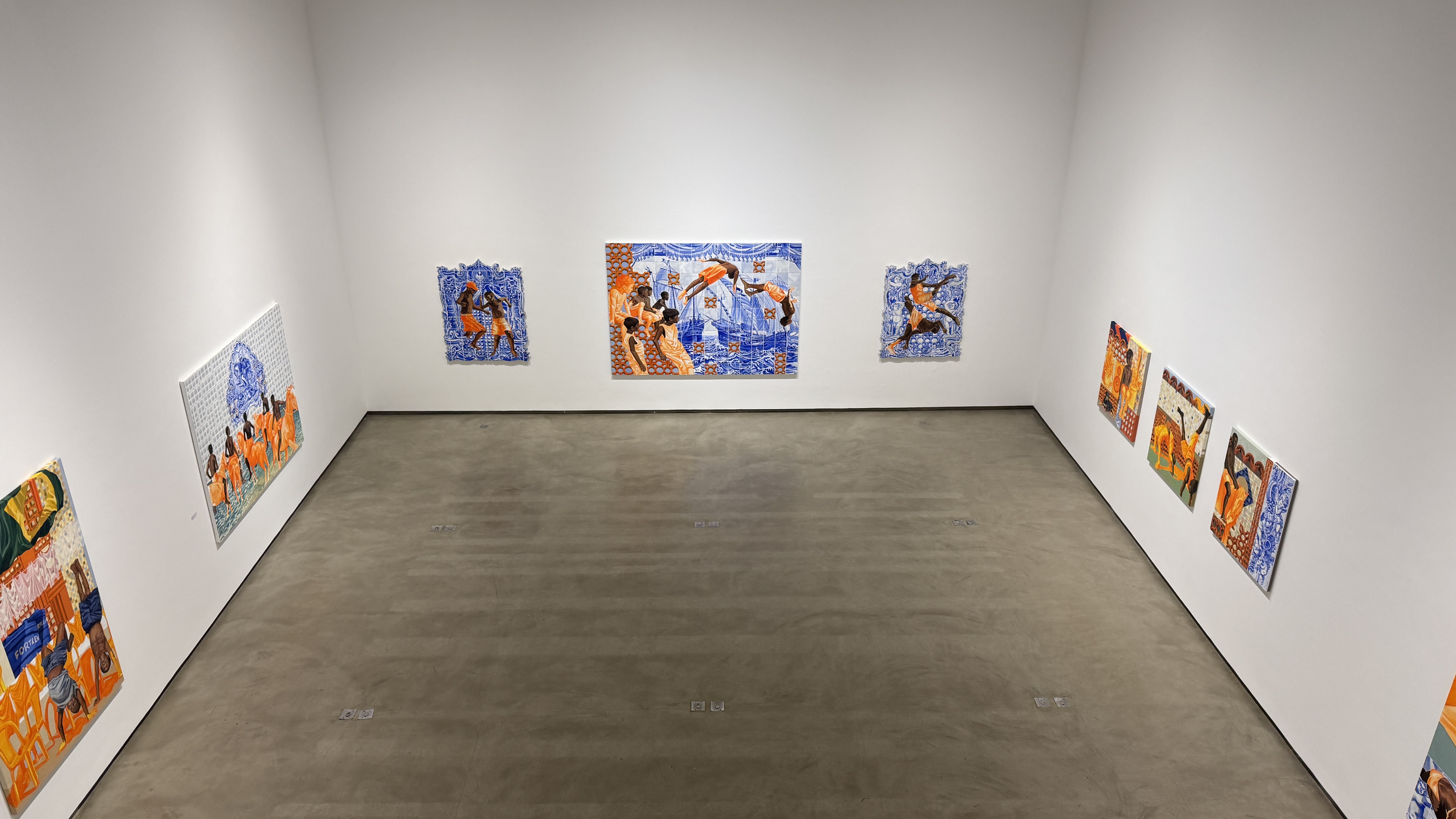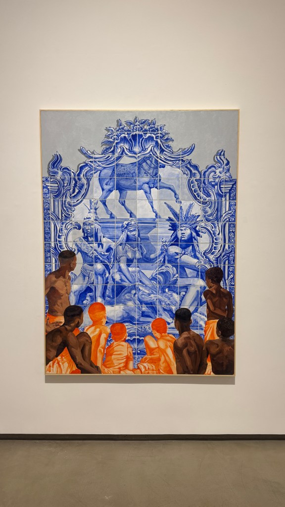 lombo de cavalos, entre as rachaduras dos azulejos azuis, entre